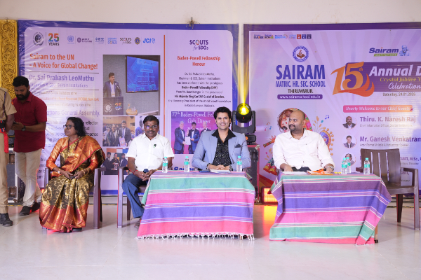 Sairam Matric Higher secondary school successfully celebrated its Crystal Jubilee Year in a grand manner on 24.1.26. The celebration included a cultural programme featuring performances by the students and Crystal Jubilee Year Magazine was also launched during the ceremony.