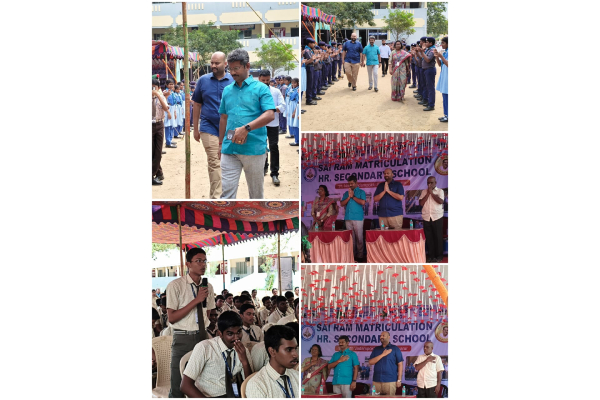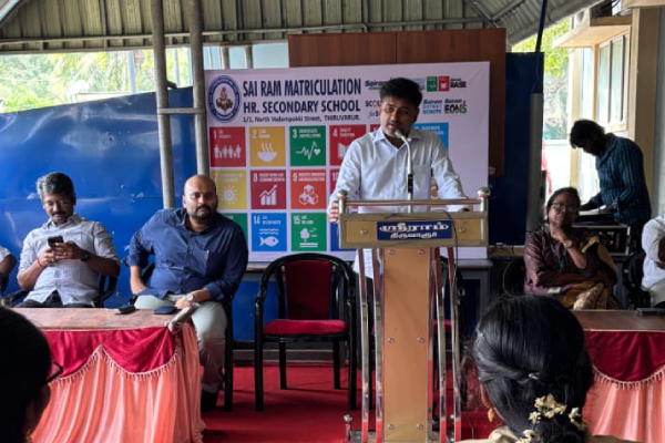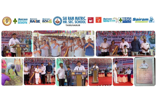 Sairam Matric Higher Secondary School, Thiruvarur is deeply honored by the esteemed presence of our Chairman, the charismatic leader Dr. Saiprakash Leo Muthu sir, along with our Chief Business Officer (CBO) sir, Chief Information Officer (CIO) sir, and Chief Strategy Officer (CSO) sir. Today’s highlight is the Chairman’s insightful address, focusing on his visionary concept of Global Citizenship through the lens of the Sustainable Development Goals (SDGs). He elaborated on how embracing the Seven Habits of Highly Effective People can empower students to become proactive and responsible global citizens.