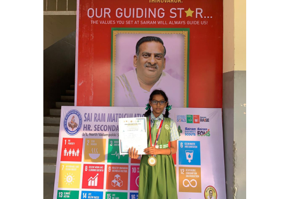 K. Narumugai, V -A, Sairam Matriculation Higher Secondary School, Thiruvarur, For her outstanding achievement in Yoga.