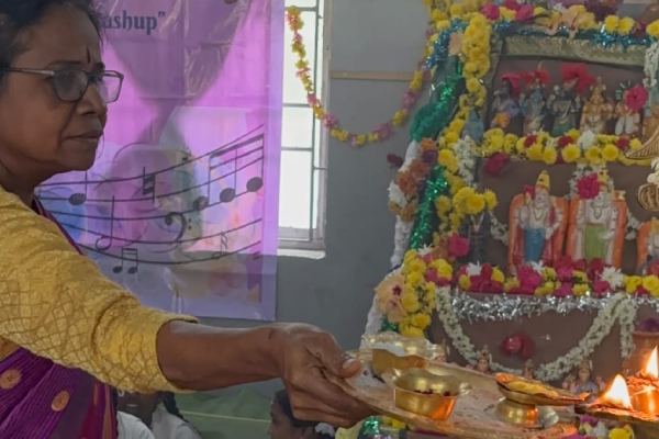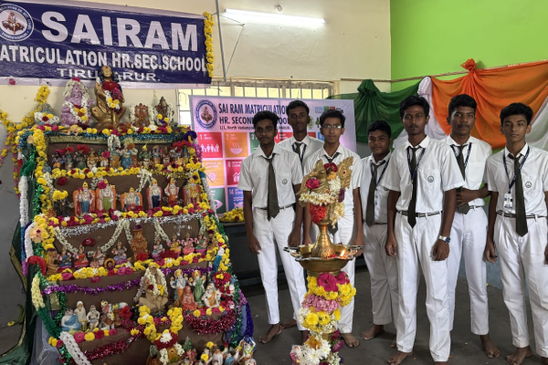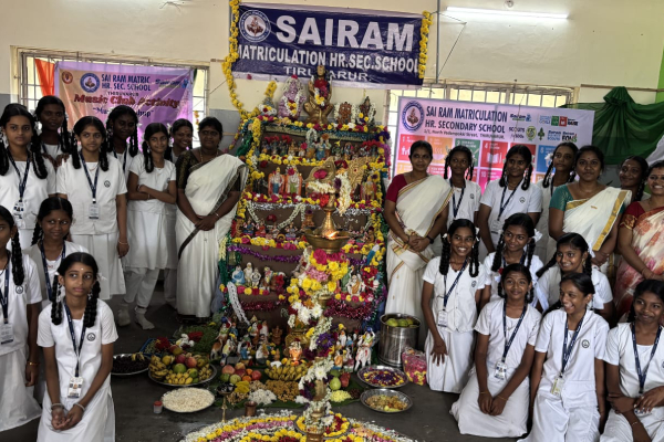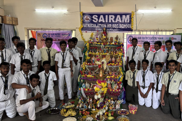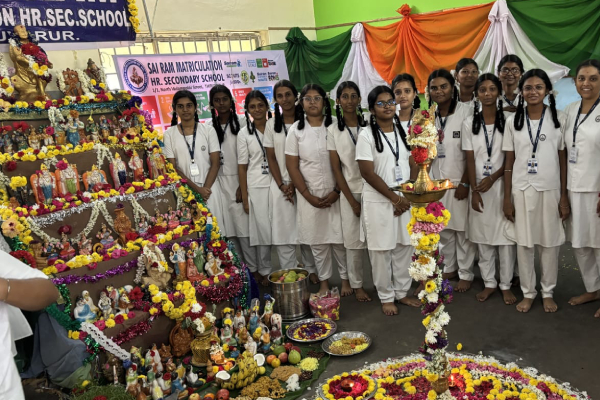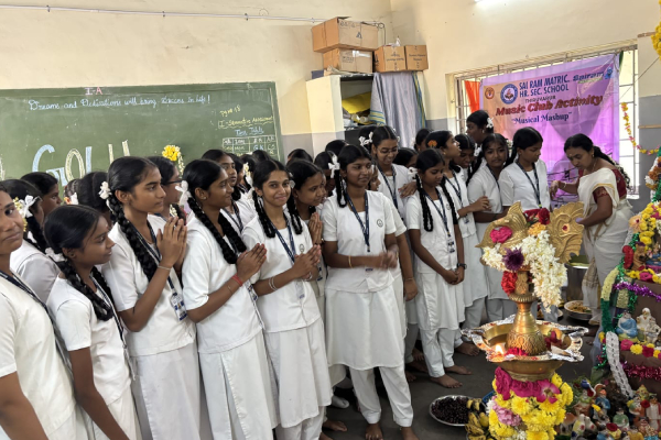 Students sang devotional songs and bhajans dedicated to Goddess Durga, Saraswathi, and Lakshmi. Their melodious voices created a spiritual and festive atmosphere.